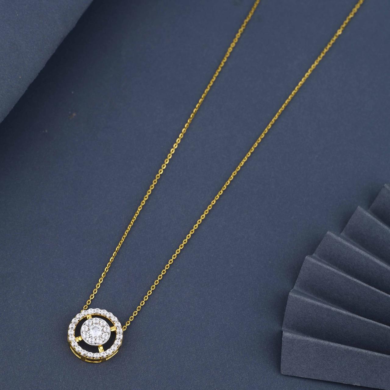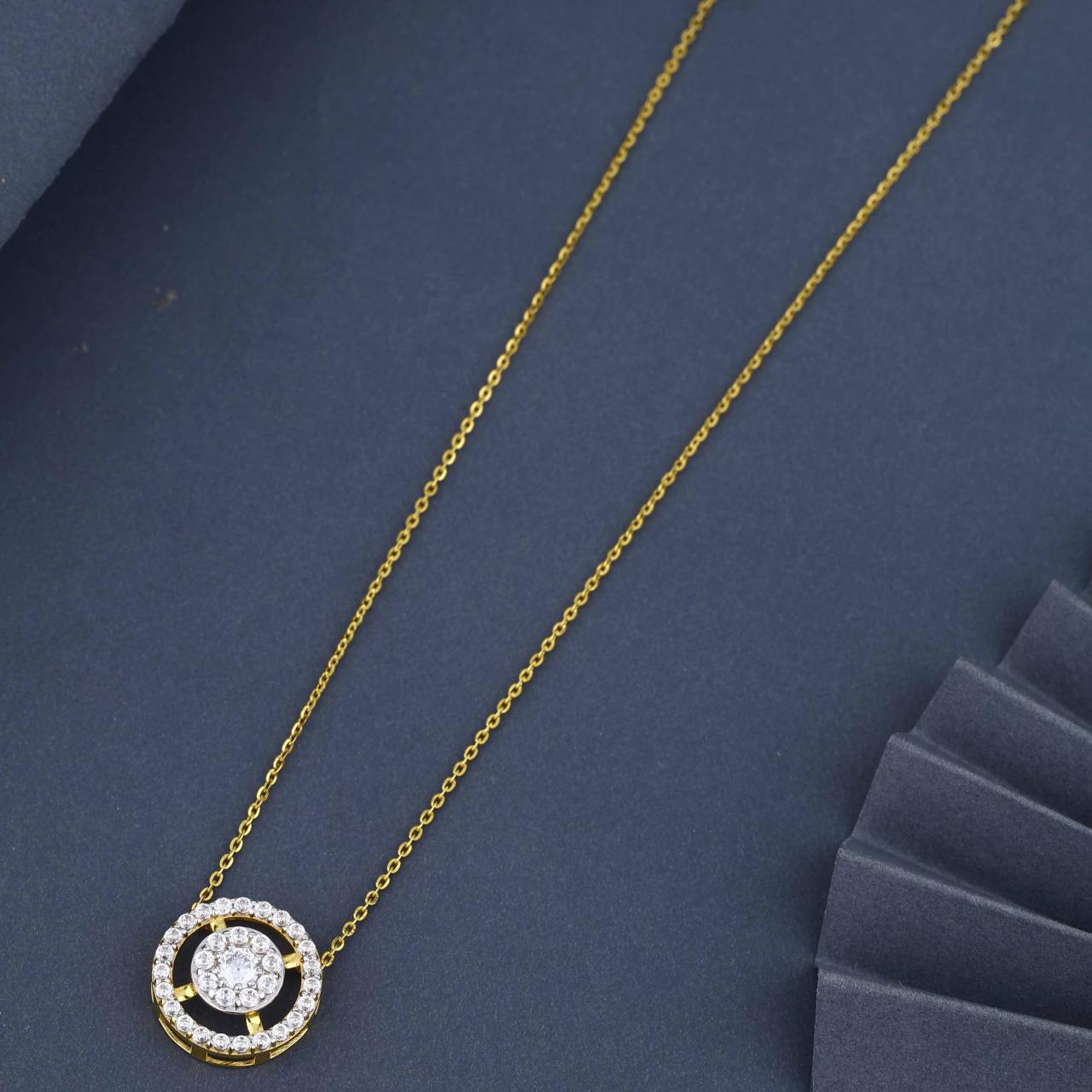 Product Name Circular Cubic Zirconia Gold Pendant with Chain