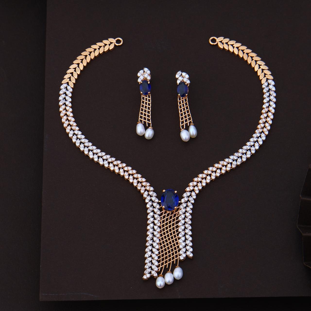 Product name: Designer Diamond Necklace Set with Blue Stone