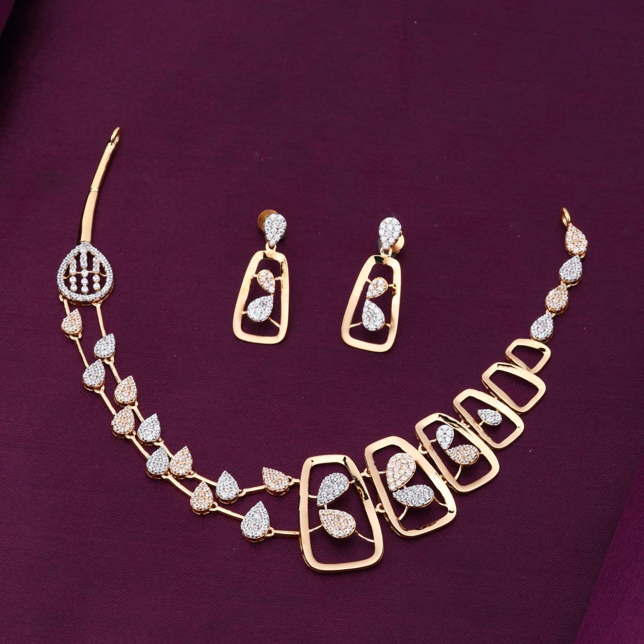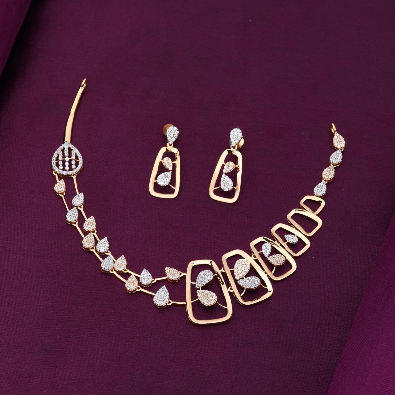 Get More Details Geometric Aperture & Dewdrop Rose Gold Necklace Set (1RN18-176/ERR18-1267)