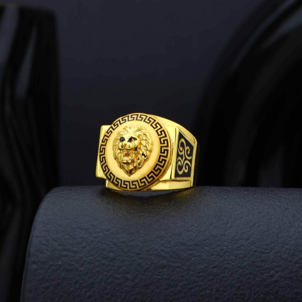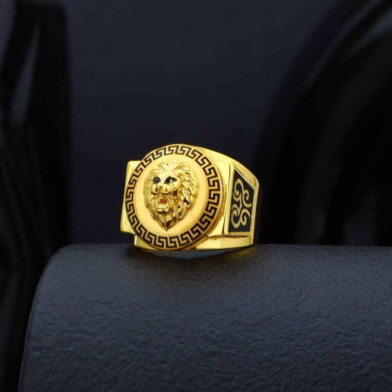 Get More Details Gold Lion Head Greek Key Medusa Ring (JRG22-1746)