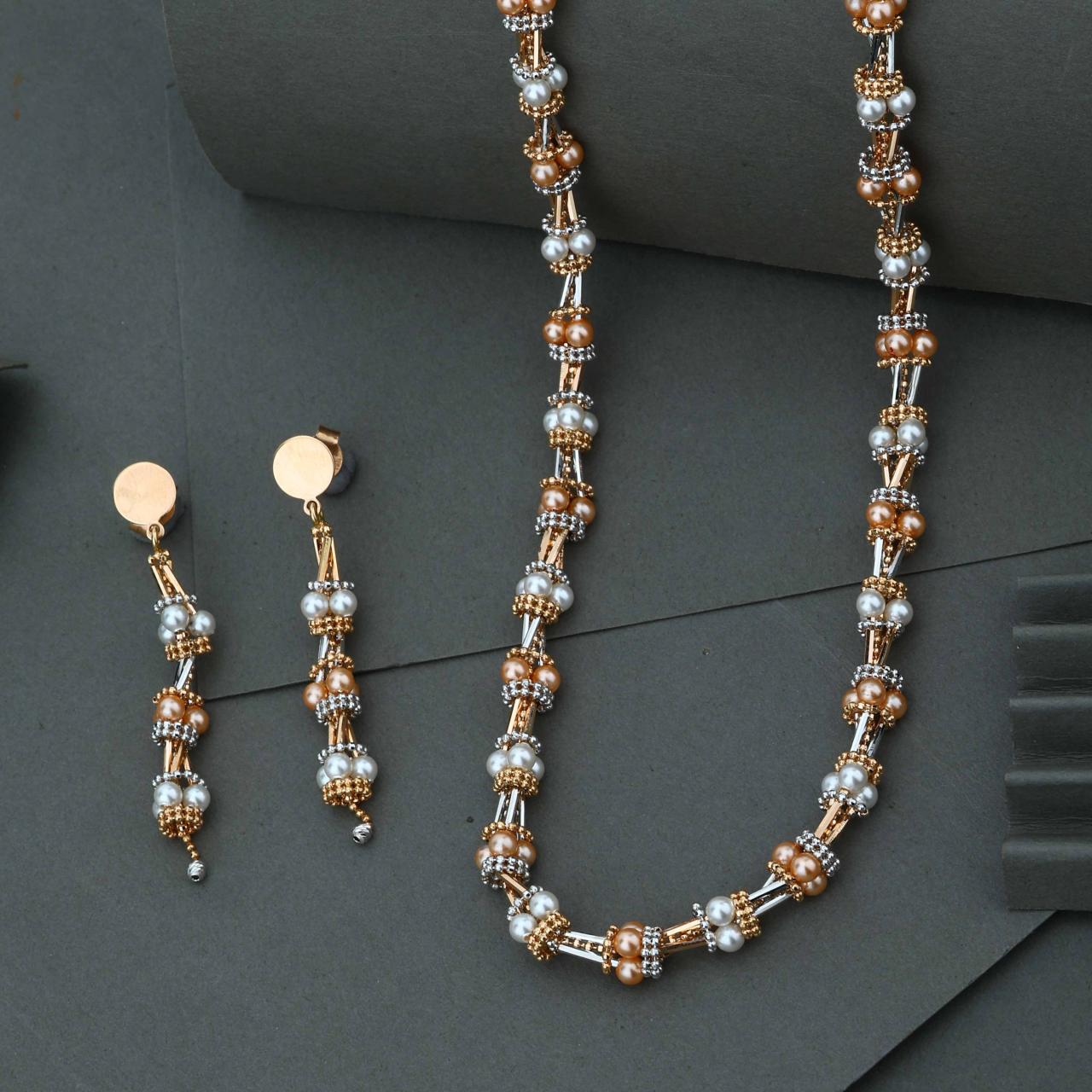 Italian Jewel Two-tone Pearl Necklace Set (VPNC18-62)
