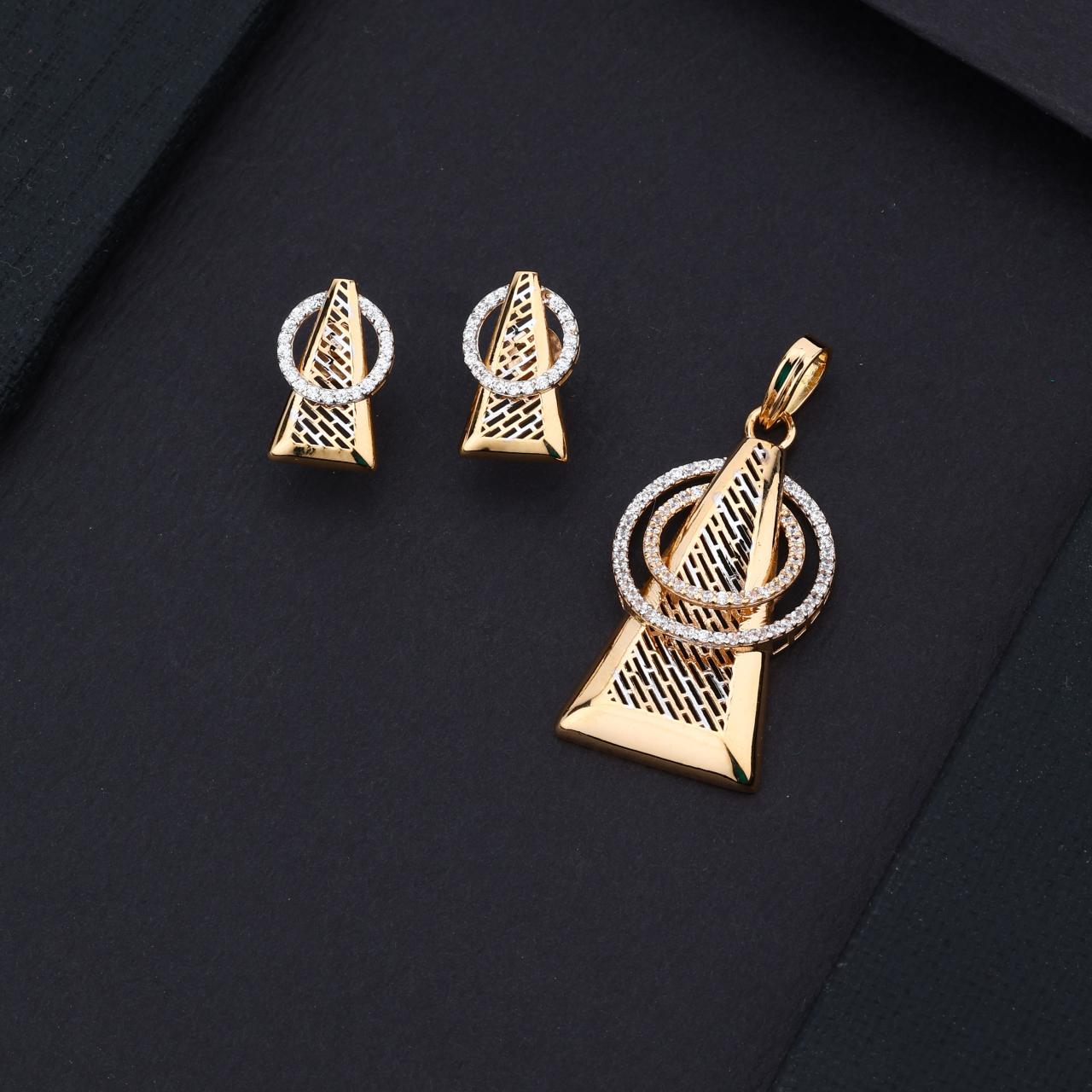 Get More Details Modern Architectural Gold Pendant & Earrings Set (RP18-436 / ERR18-1358)